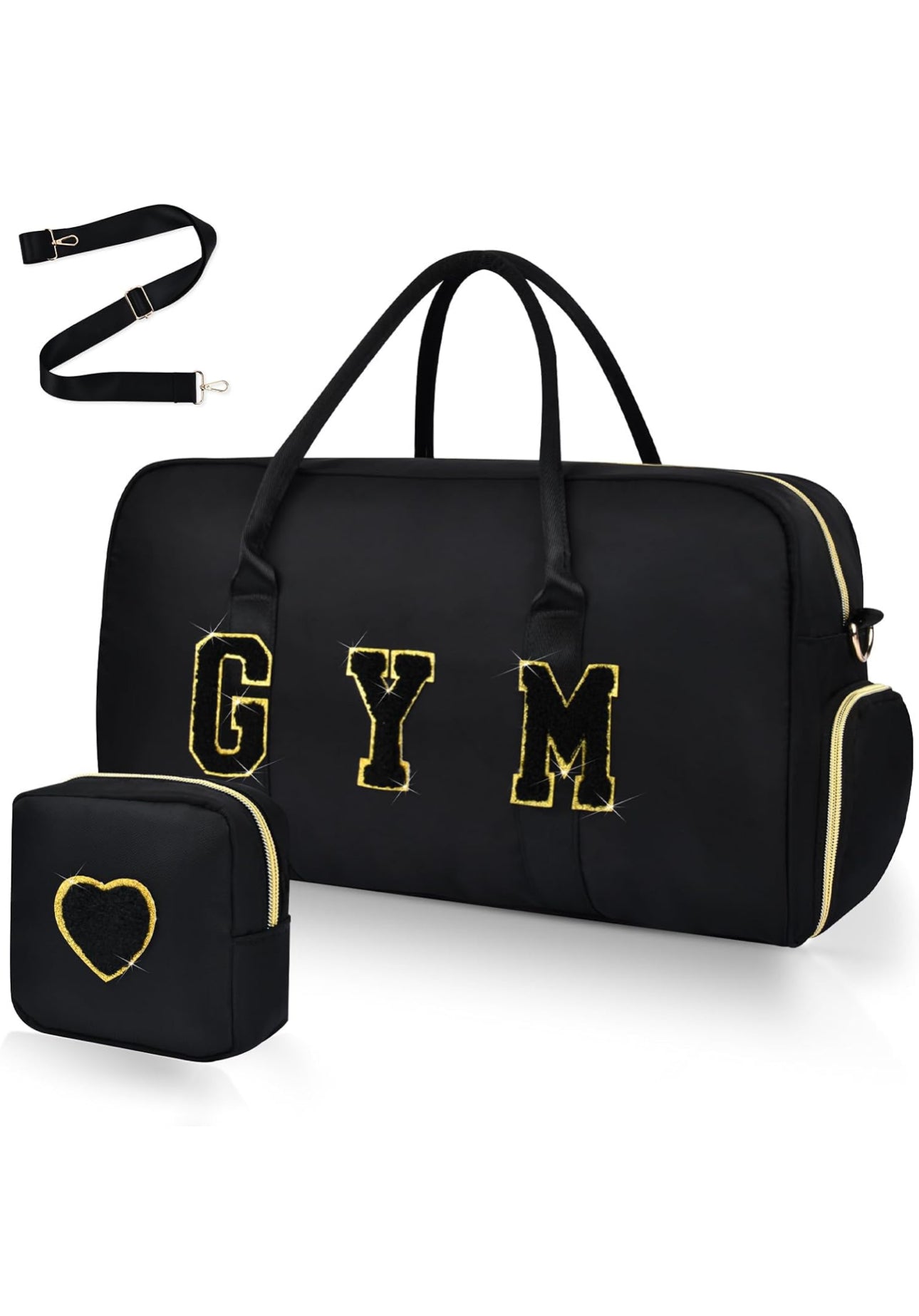 - [Cute & Fun Chenille Embroidered] The gym duffle bag features charming chenille embroidered lettering, meticulously sewn directly onto the front of the bag. The soft, textured chenille embroidery enhances the bag's overall aesthetic, making it stand out from ordinary gym sport bags